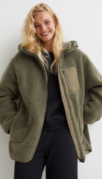 I’m also so happy that shearling is still on trend this year as it is so cosy and warm. The green hooded faux shearling jacket is a great splash of colour and looks very comfortable. Another option is the beige faux shearling jacket